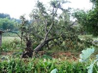 我が家では、秋の実りを伝えてくれた栗の木が2本倒れ(写真)、まだ青い柚子の実も数多く落下してしまいました。